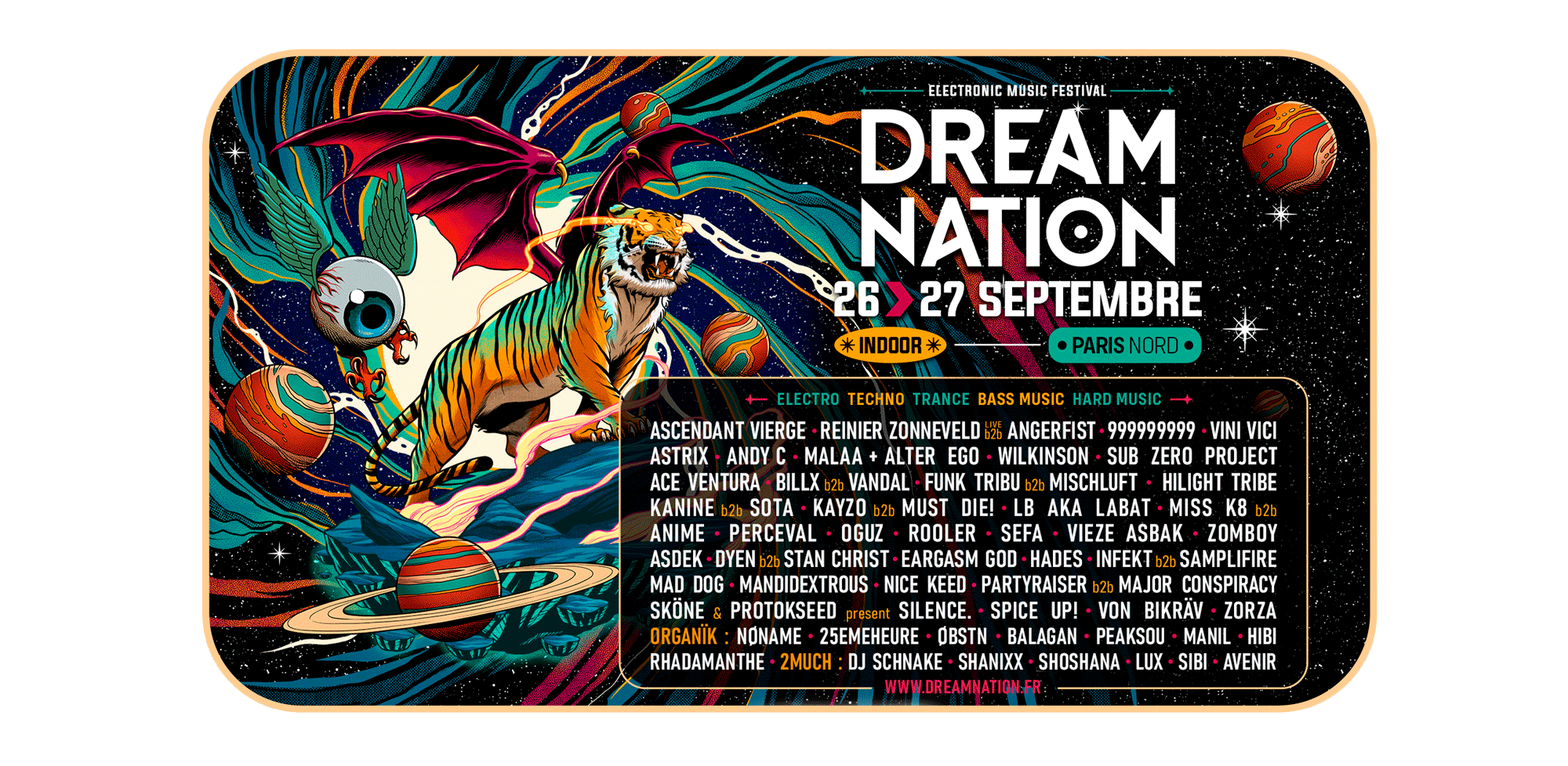 Marquez vos calendriers : les 26 et 27 septembre 2025, Dream Nation vous donne rendez-vous au Parc des Expositions Paris Nord pour célébrer toutes les facettes des musiques électroniques dans un univers total, festif et démesuré. Dream Nation s’annonce déjà comme LE rendez-vous incontournable de la rentrée. Alors, prêt·e à tenter l’expérience… et repousser les limites de la nuit ?